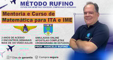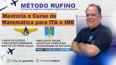 Nas mentorias do prof. Rufino você terá acesso ao Método Rufino, que foi o método autoral de estudos que o prof. Rufino criou e usou na sua época de aluno para passar na AFA, Escola Naval e ITA de primeira tentativa e estudando sozinho em casa. Você receberá cronograma completo (de todas as disciplinas do seu concurso) e vídeo explicativo de como seguir essa fórmula de sucesso.
